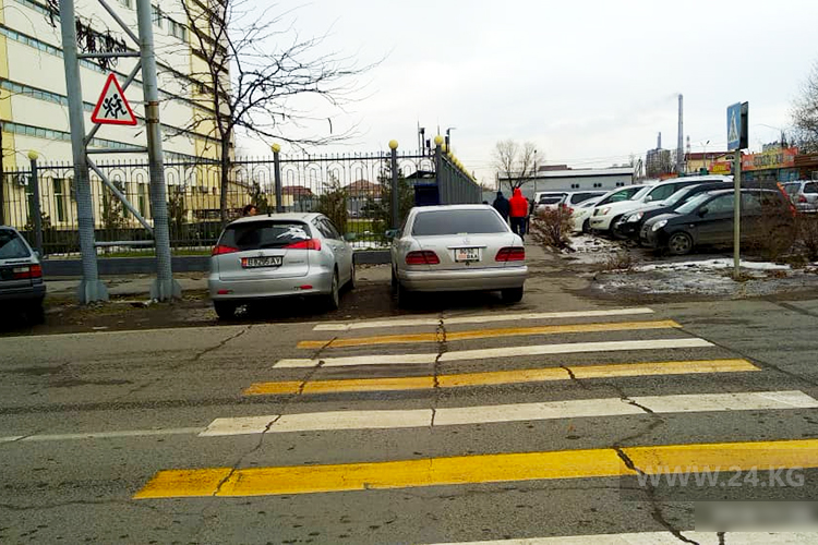 Несознательные водители оставили авто на пешеходном переходе в районе пересечения улиц Суюмбаева и Огонбаева.
