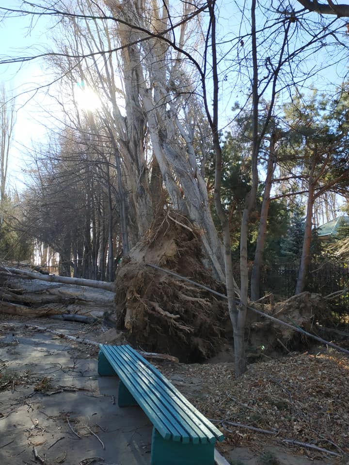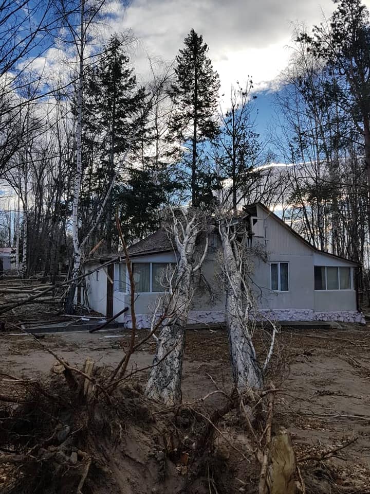 Порывы ветра были такой силы, что деревья вывернуло с корнем. Пострадали многие коттеджи и инфраструктура зоны отдыха в целом.
