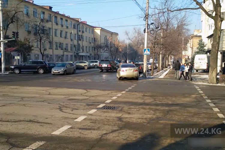 На перекрестке улиц Киевской и Тыныстанова тоже удобное место для парковки.А эти водители остановились на пешеходном переходе.