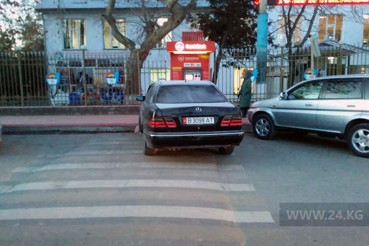 Или этот в Джалал-Абаде. По словам читателя, это машина преподователя Джалал-Абадского университета экономики и предпринимательства. «На замечания владелец не реагирует и говорит, что портим с утра ему настроение», — рассказал он.