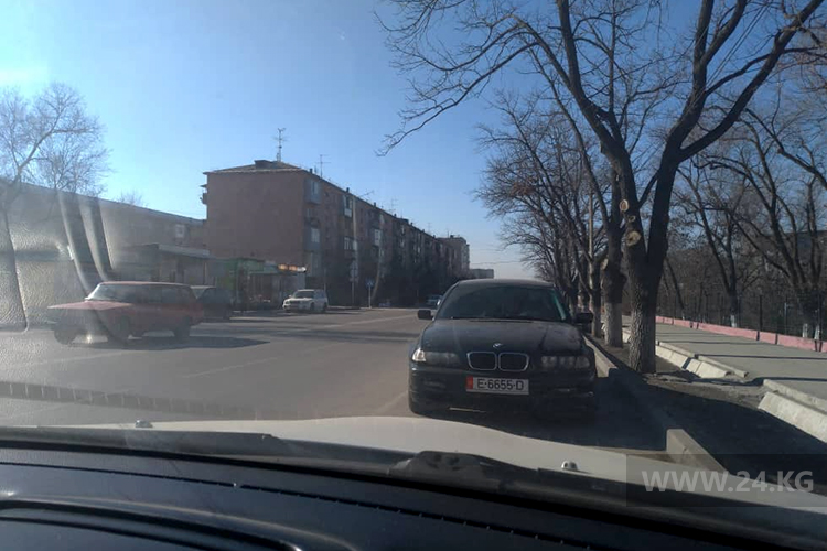 Житель Оша прислал «чудака парковки», который оставил авто на тротуаре.