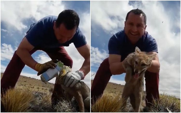 Захватывающее видео спасения лисы сняли в Аргентине. Ролик появился на YouTube.