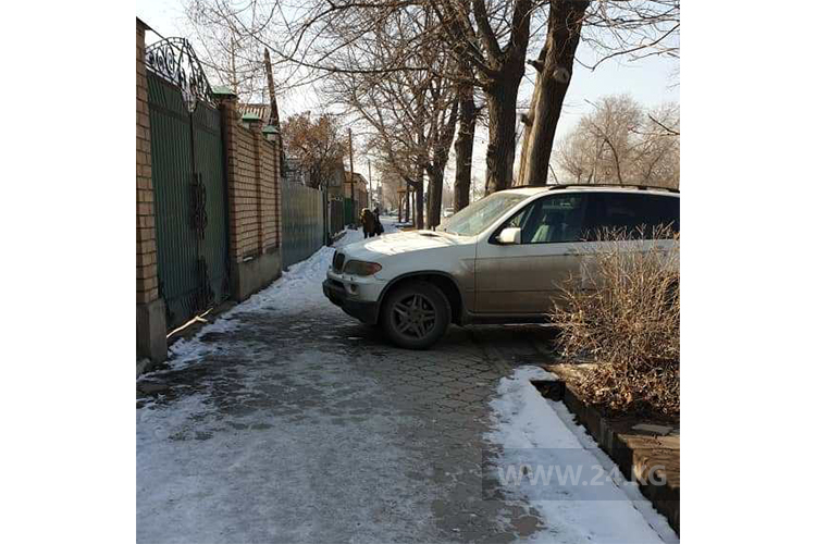 Хамское отношение водителей к пешеходам наблюдается и в Оше. Этот оставил машину на зебре на пересечении улиц Моминова и Ленина.