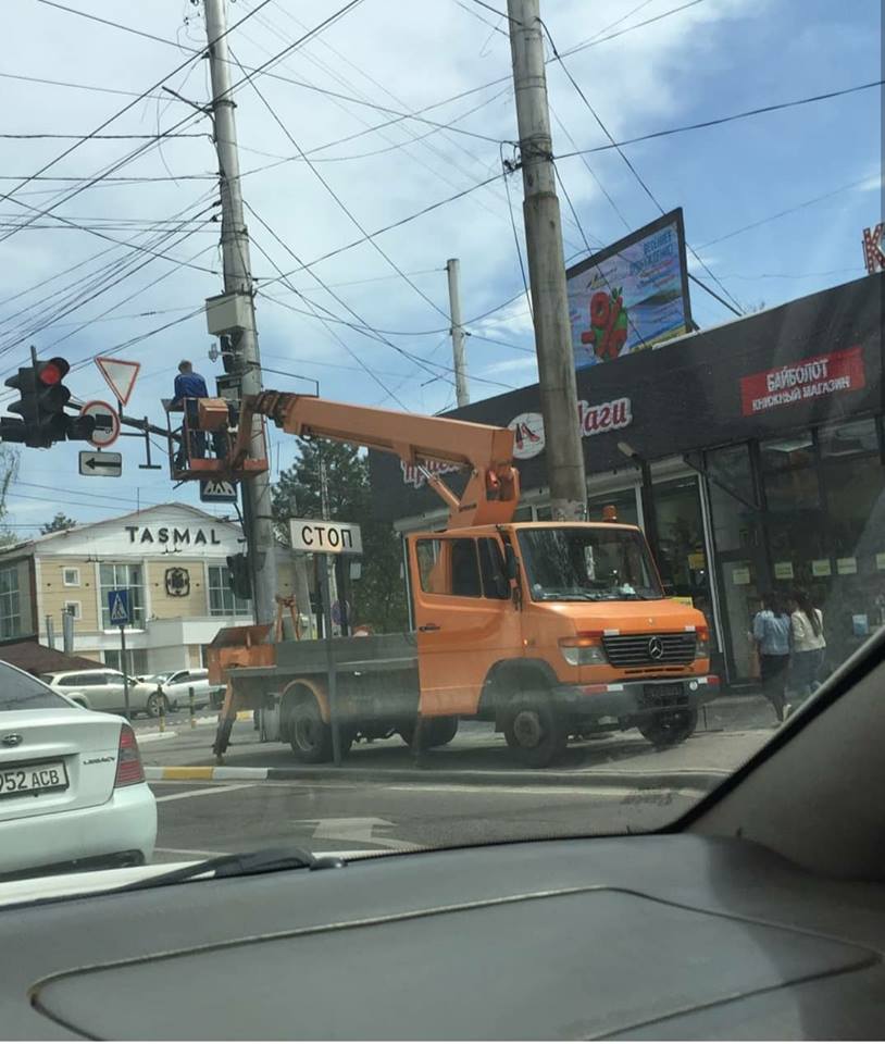 Пользователь Адыл Жапаркулов также поделился снимками, на которых при установке камер задействованы авто без госномеров.