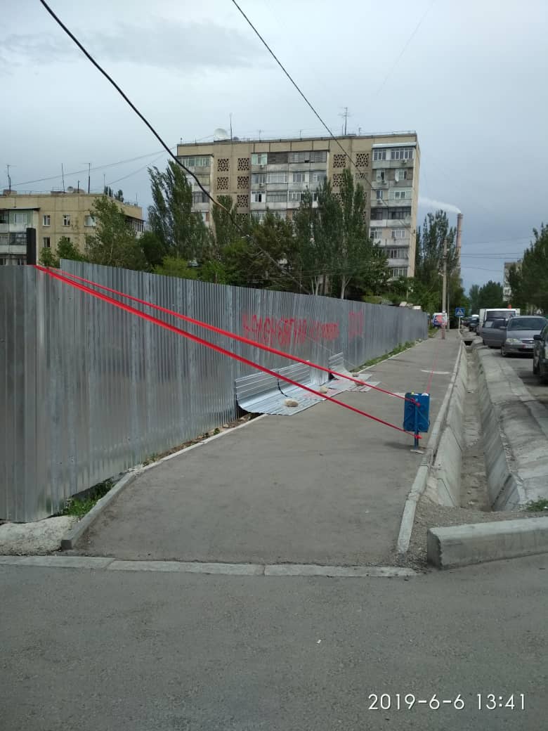 По их словам, тротуар по улице Мамбетова недавно отремонтировали. Сейчас он перекрыт из-за стройки.