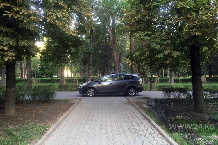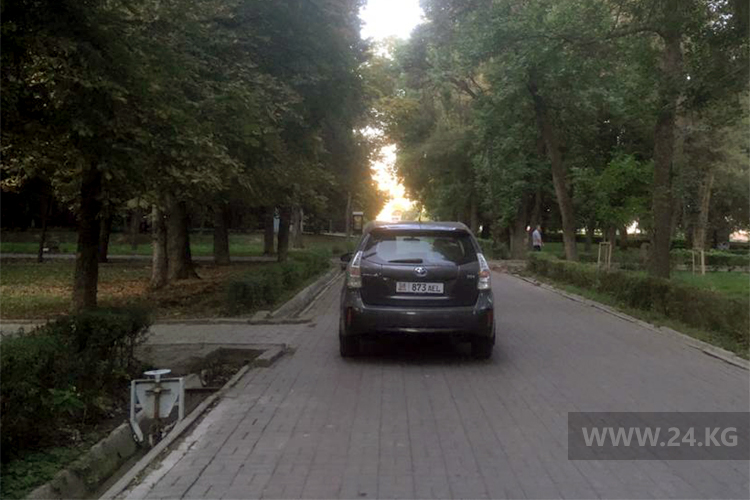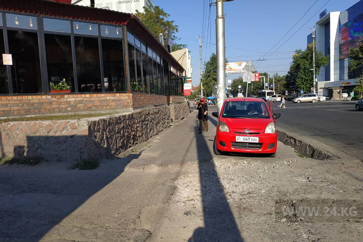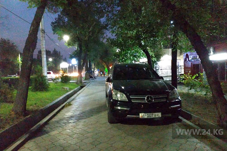 Некоторые водители без зазрения совести заезжают на тротуары. Так, водитель «Мерседеса» загородил проход на проспекте Айтматова.