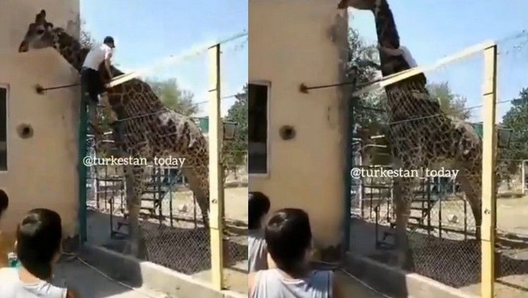 Администрация Шымкентского государственного зоопарка обратилась в полицию с требованием расследовать поведение посетителя, который залез в вольер с жирафом и оседлал животное. Об этом сообщило агентство «Фергана».