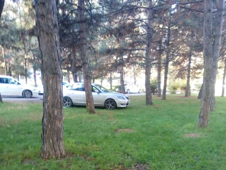 В 8-м микрорайоне превратили в парковку газон. На прошлой неделе читатель сообщил об одной машине, на этой их уже несколько.