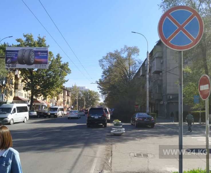 На перекресток проспекта Чуй и улицы Исанова жалуются постоянно. Здесь под запрещающим знаком стоят автомобили и затрудняют движение.