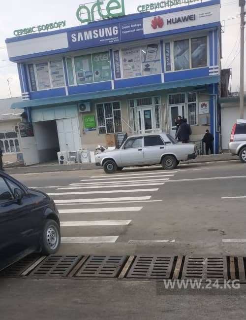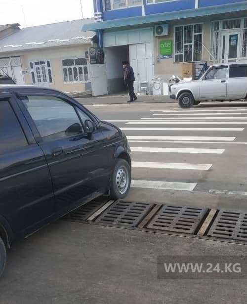 В Оше на улице Шакирова машины стояли на пешеходном переходе.