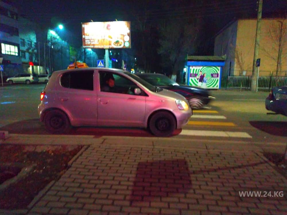 Таксист стоял на пешеходе на улице Тыныстанова. Правда, по словам автора фотографии, после замечания с него съехал.