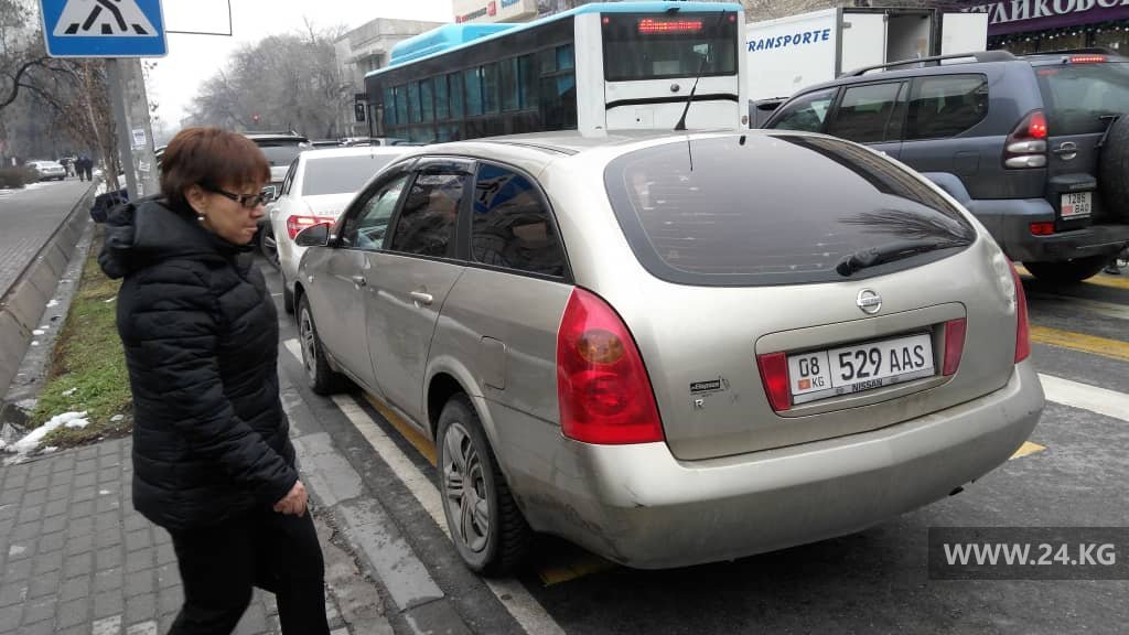 Закрыв проход для горожан, на зебре встал и водитель «Ниссана» на перекрестке Токтогула/Калыка Акиева.«Машина припаркована на проезжей части на проспекте Шабдана Баатыра, 71. Видимо, хозяин после Нового года забыл, где оставил машину», — написал автор фото.