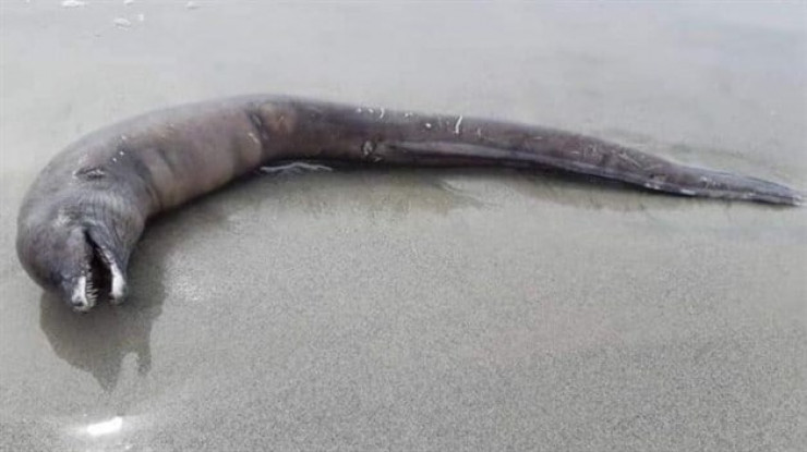 Загадочное существо обнаружили местные жители во время прогулки по побережью. Свидетели приняли его за мертвого дельфина, но позже решили, что существо вынесло из глубин океана, так как у него не было глаз.