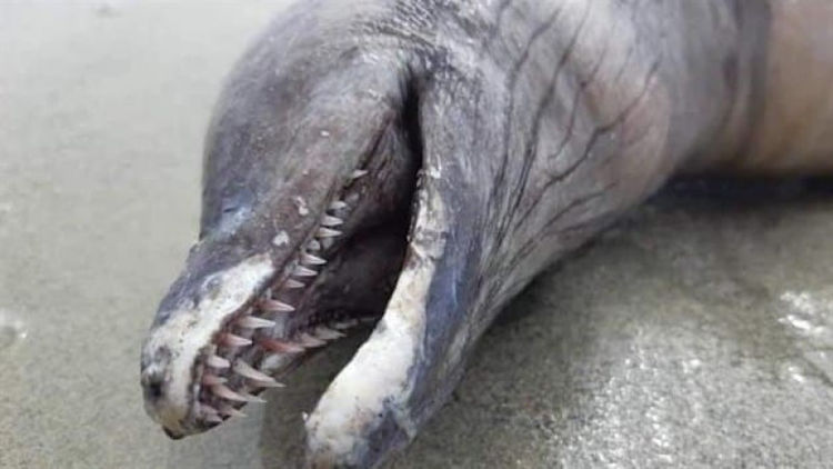На побережье мексиканского полуострова Пунта Мита (штат Наярит) волны вынесли неизвестное морское существо с острыми зубами, без глаз, с носом дельфина, удлиненным туловищем и вытянутым хвостом. Об этом сообщило Tengrinews.kz со ссылкой на Tribuna de la Bahía.