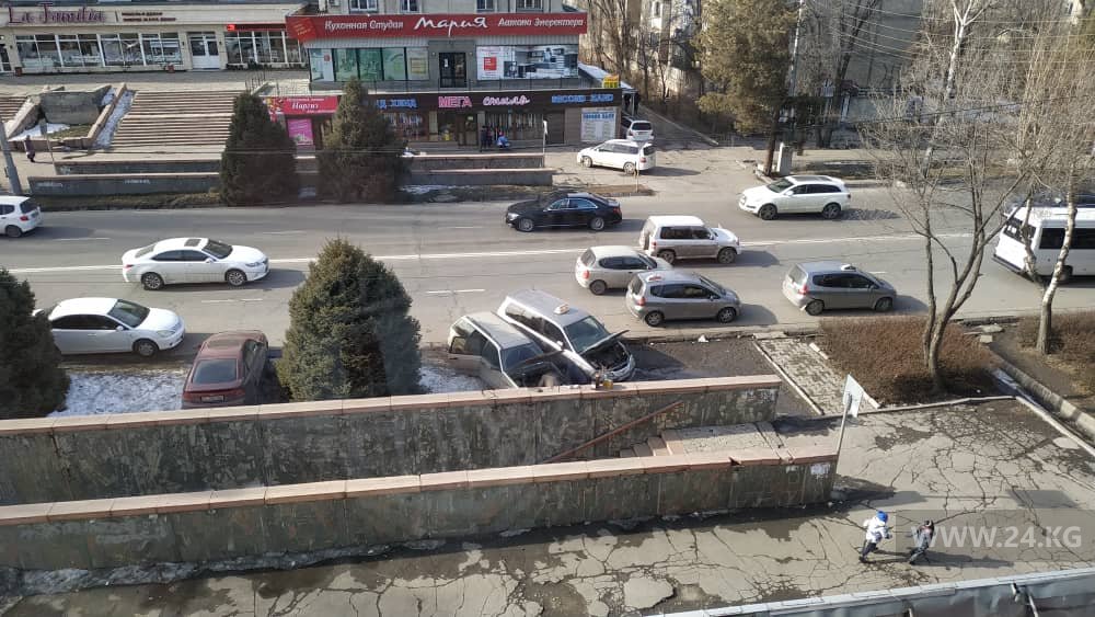 Еще несколько чудаков заехали на тротуар на проспекте Манаса. «Почему до сих пор все тротуары не закрыли столбиками от таких наглых водителей?» — интересуется автор фото.