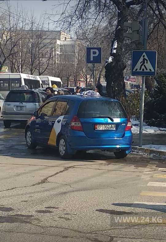 На дороге встал и этот таксист на пересечении улиц Киевской и Исанова. На просьбу поставить автомобиль в другое место нагрубил.