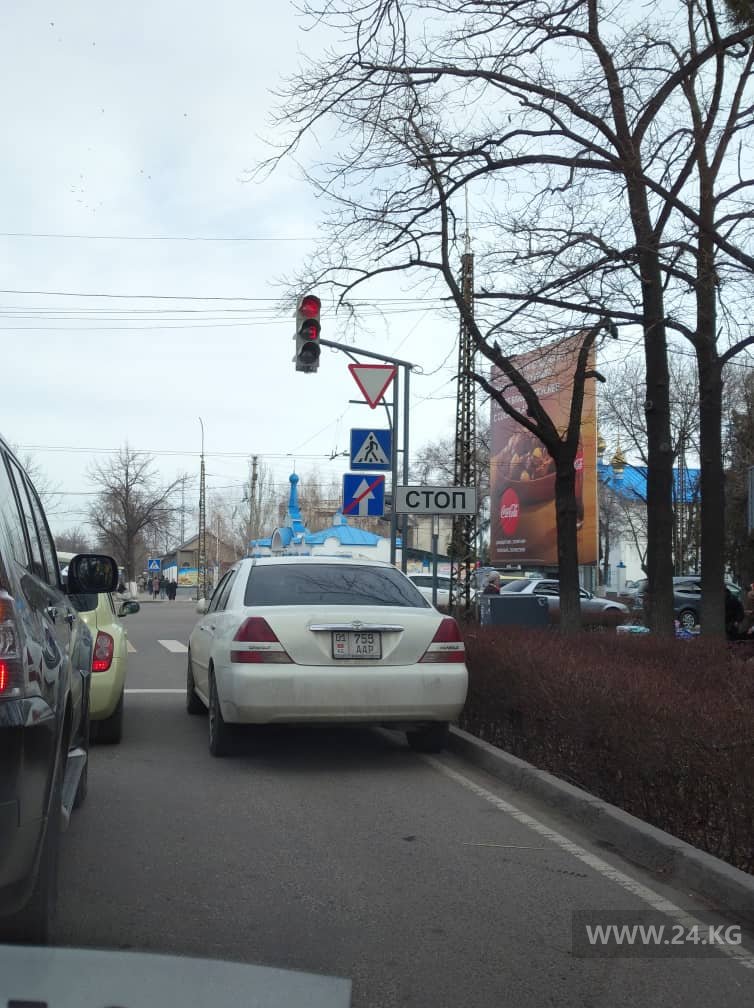 Водитель оставил свое авто прямо на перекрестке улицы Тоголока Молдо и проспекта Жибек Жолу.