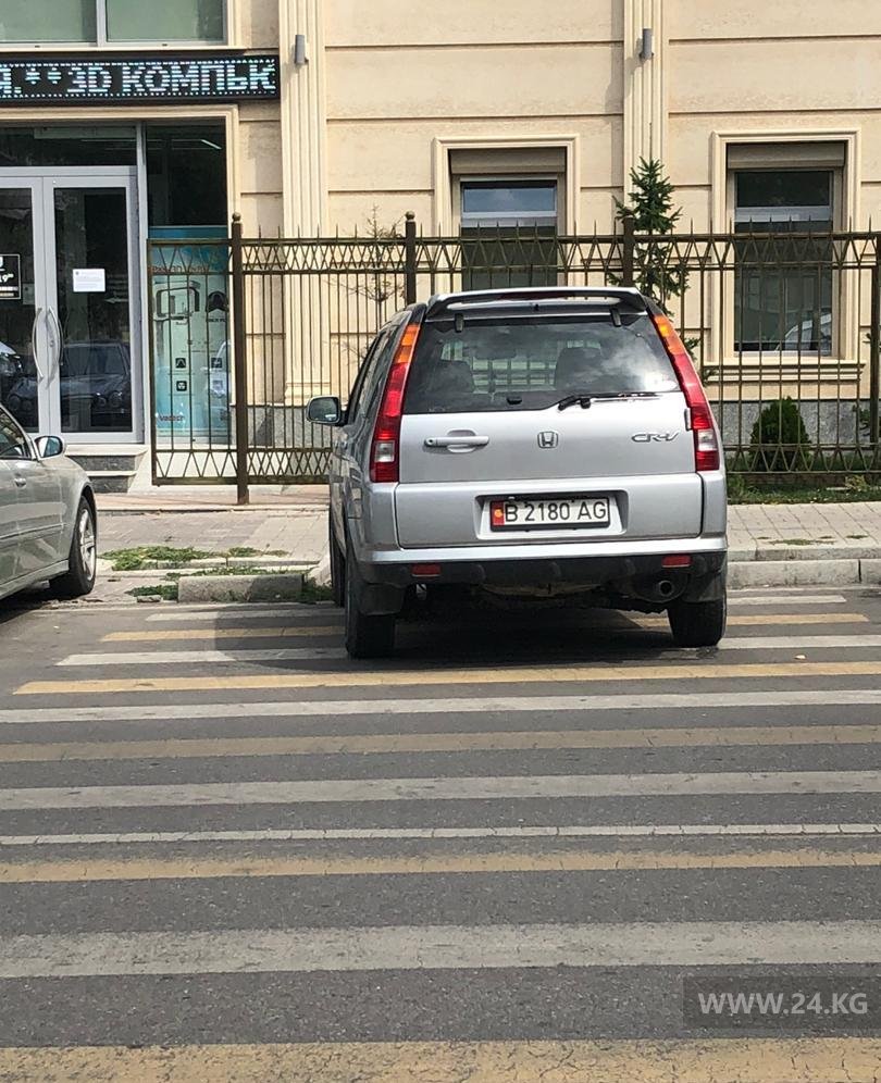 На улице Тыныстанова, 213, каждый день оставляют авто на разметке пешеходного перехода.