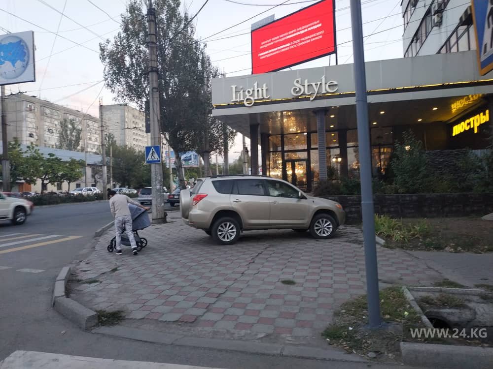 Владелец внедорожника нашел для него место на тротуаре на перекрестке улиц Токтогула и Ибраимова.