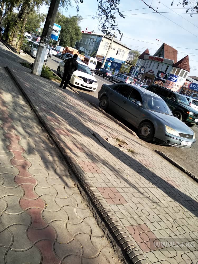 На тротуар заехал и другой автомобиль на улице Исанова.