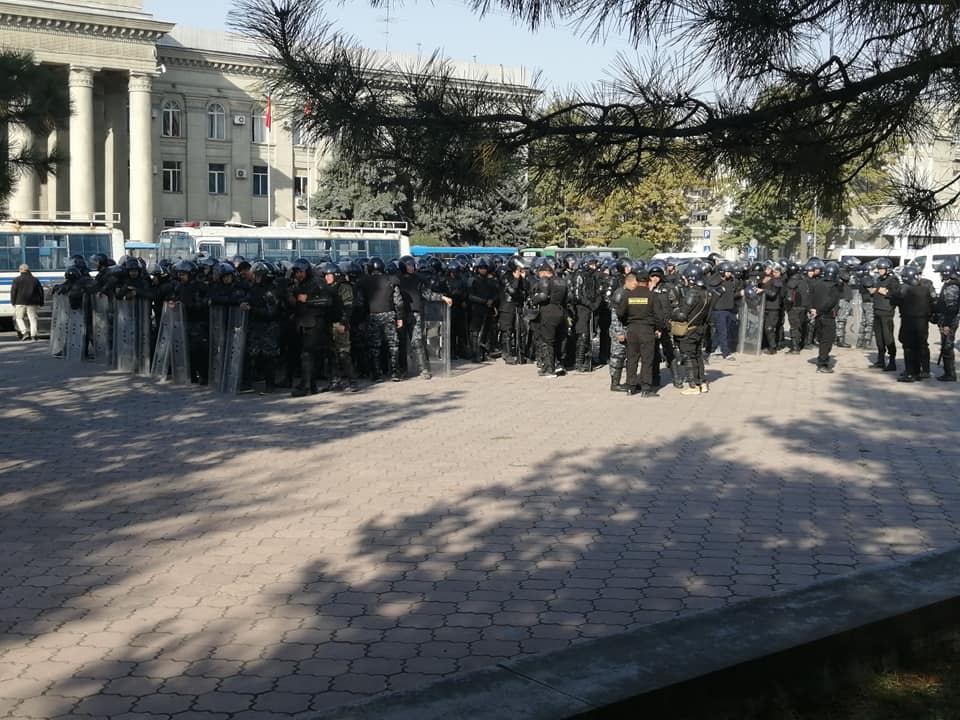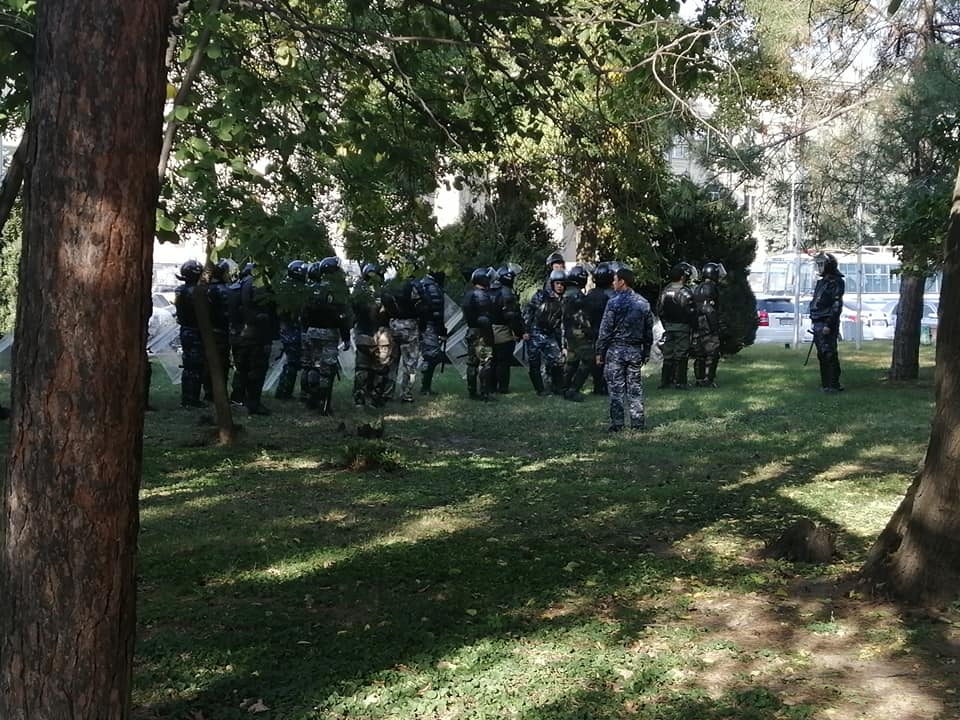 Сообщается, что на место привезли также спецсредства, в том числе щиты, каски и дубинки.