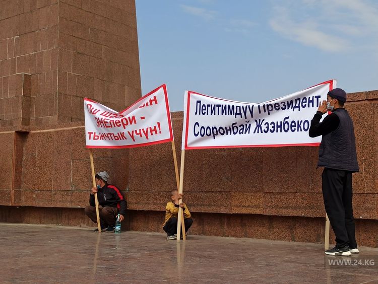 На одном из снимков видно, что дети и подростки держат транспаранты с надписями «Сооронбай Жээнбеков легитимный президент» и «Матери Оша за мир».