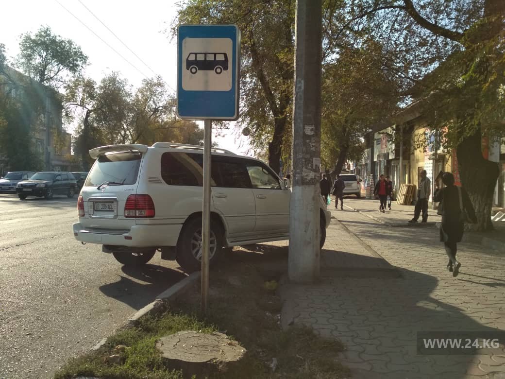 На улице Толстого возле рынка «Баткен» водитель припарковался на остановке общественного транспорта.