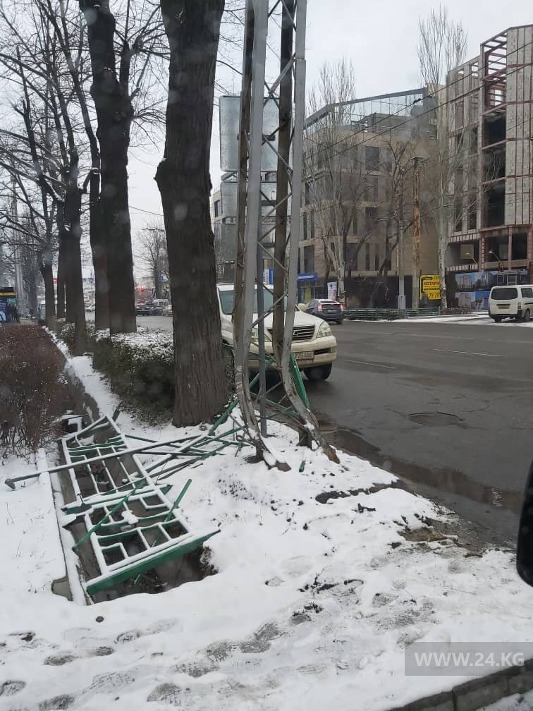 Ранее читатели сообщили, что на улице Шопокова в Бишкеке уже несколько дней не могут исправить покосившийся светофорный столб.