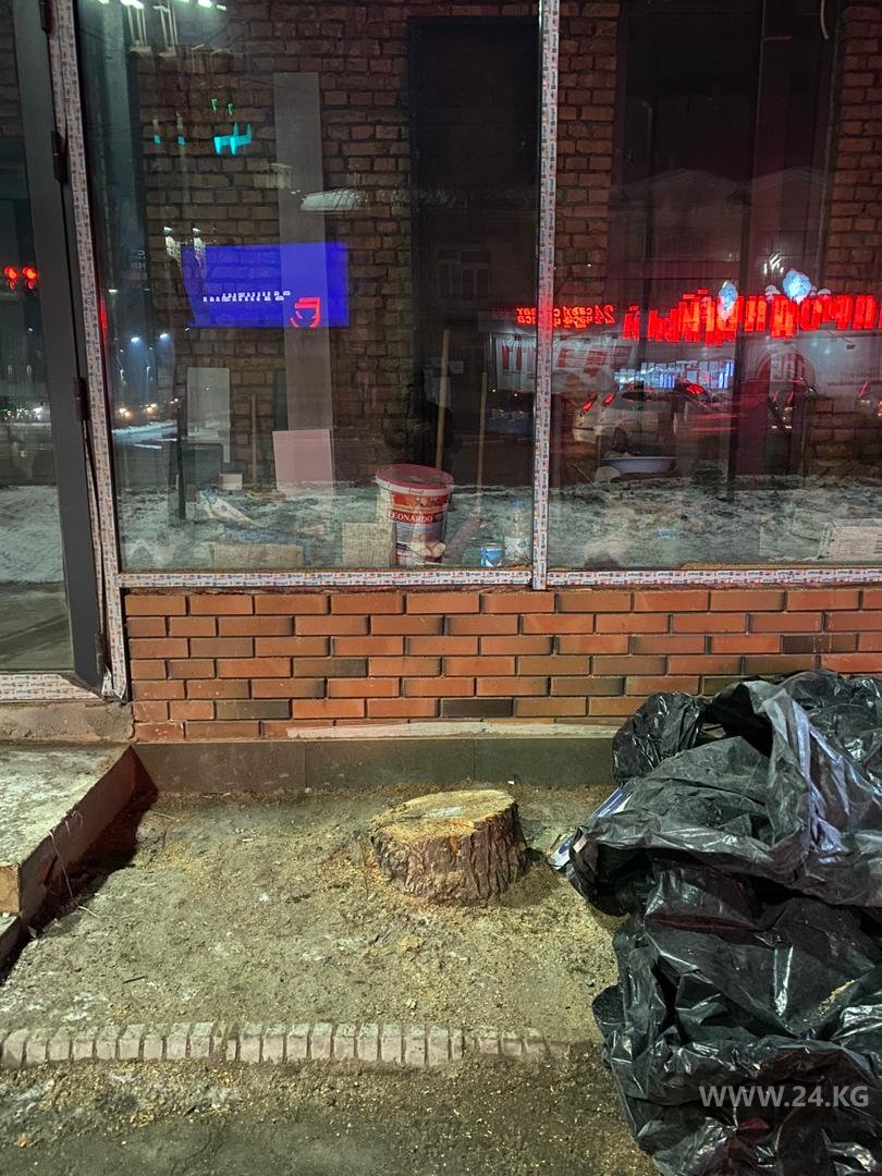 На перекрестке улицы Московской и проспекта Манаса вчера после 20.00 срубили дерево. Об этом 24-kg.com сообщил читатель.