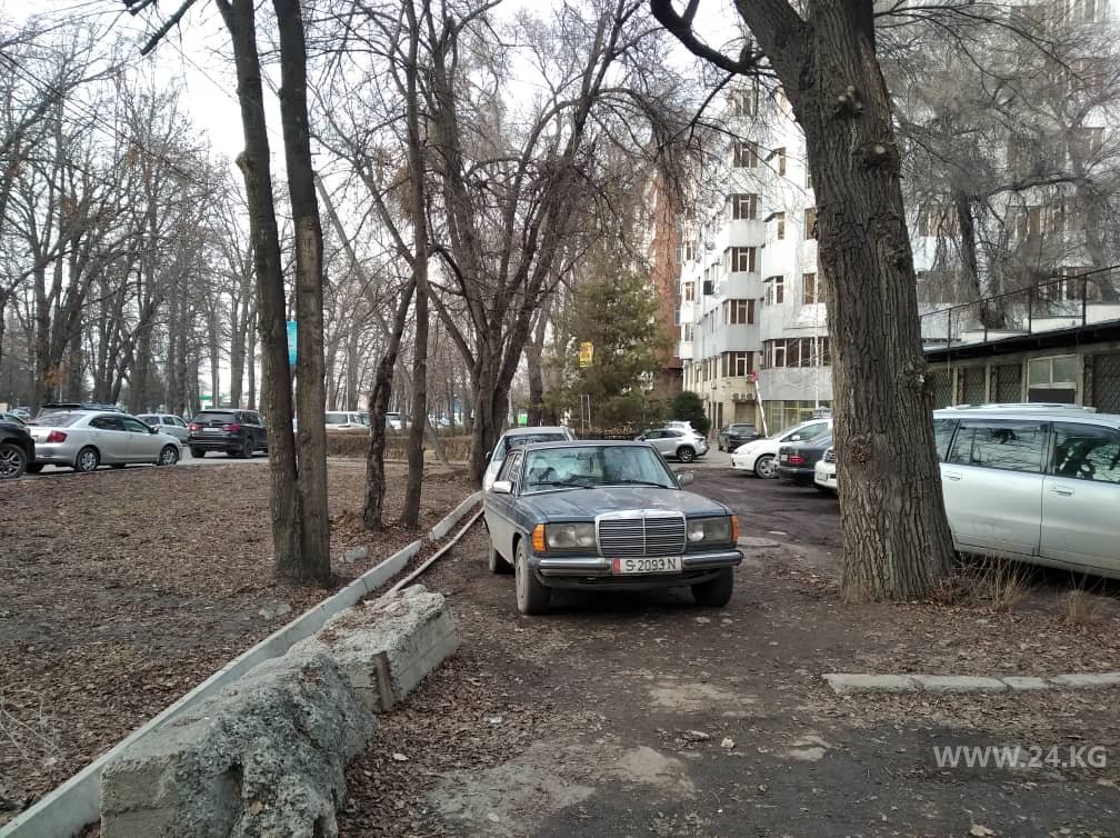 Этот «Мерседес» припаркован на остановочном пункте на улице Ахунбаева.