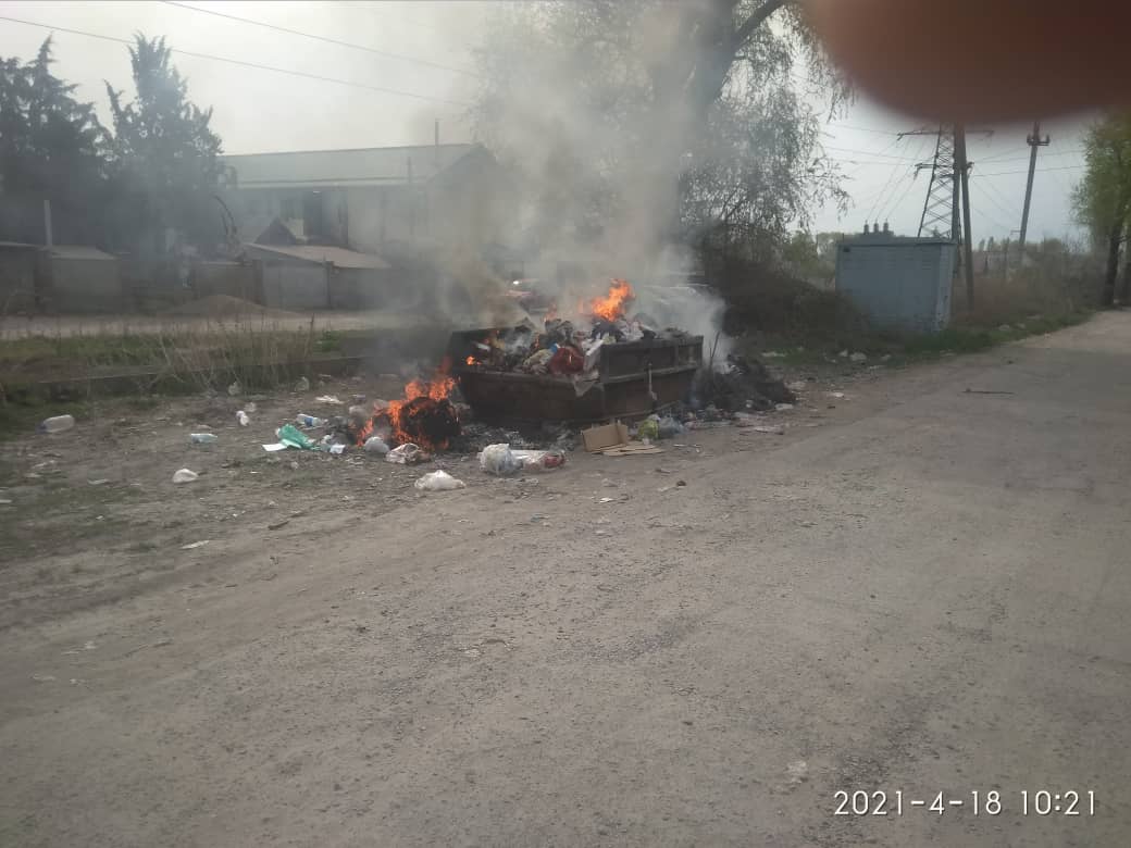 «Сегодня пришлось вызвать пожарную службу, так как рядом с мусорным баком расположен трансформатор. Мусорку поставили в неположенном месте. Своевременно отходы не вывозят, к тому же неизвестные постоянно поджигают стихийную свалку. На нашей улице работает швейный цех, все отходы бросают в контейнеры. Когда это все горит, невозможно открыть окна и выйти на улицу, кругом невыносимый запах и пепел. Айыл окмоту нашу проблему не решает уже третий год», — говорят они.