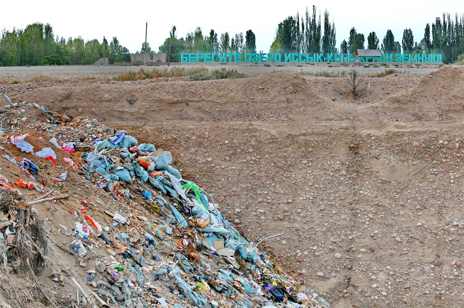 По его словам, это очень символично. Под лозунгом «Берегите озеро Иссык-Куль — красу земную» сбрасывают мусор, бытовые отходы, устроив стихийную свалку.