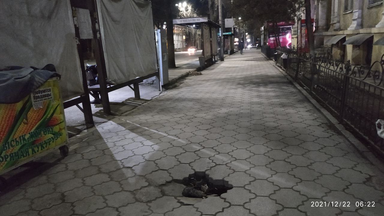 Горожанин пожаловался на тротуары в центре Бишкека. Фотографии опубликовали в Telegram.