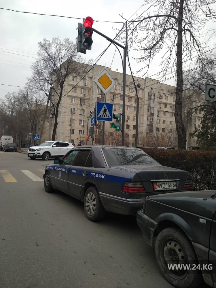 В Бишкеке на пересечении улиц Жумабека и Тыныстанова машина стояла также на перекрестке.