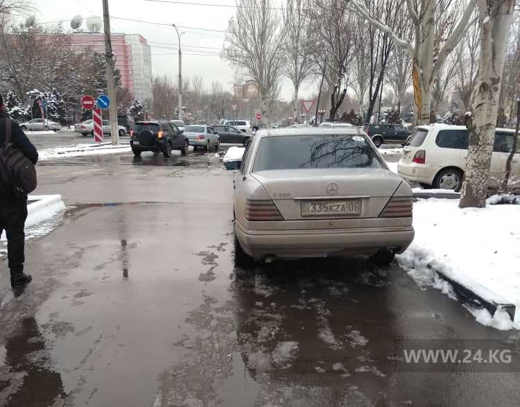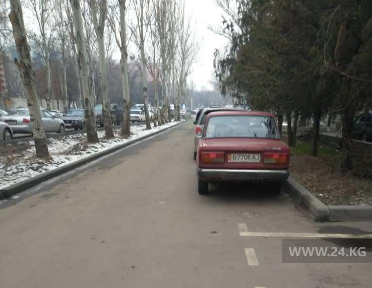 Несколько машин стояли на тротуарах: на улицах Огонбаева, Чокморова, Руставели, а также в 8-м микрорайоне.