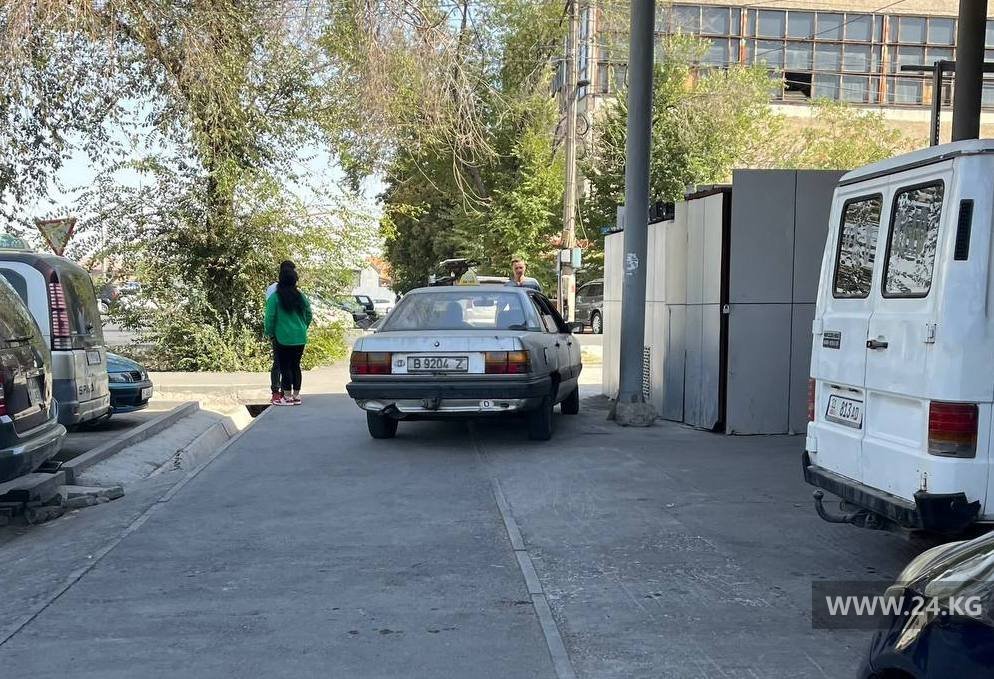 Таксист каждый день паркуется на тротуаре на пересечении улиц Огонбаева и Суюмбаева, подвергая опасности пешеходов.