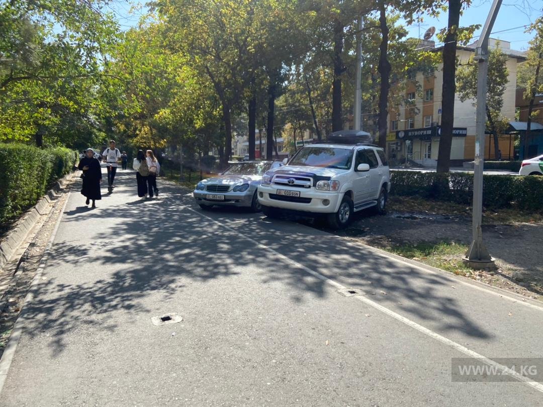 «Каждый день у въезда к Бишкекскому городскому травматологическому пункту на газоне паркуются машины. Они превратили палисадник с травой и цветами в грязную лужу. Колесами растаскивают землю. Некоторые умудряются парковаться и на велодорожке, и на газоне одновременно. Неужели нельзя аккуратно огородить этот участок?» — написал автор фото.