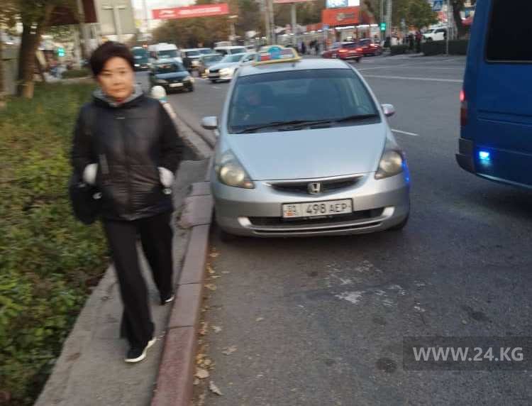 На улице Байтика Баатыра автохам также заехал на тротуар, подвергая опасности идущих.