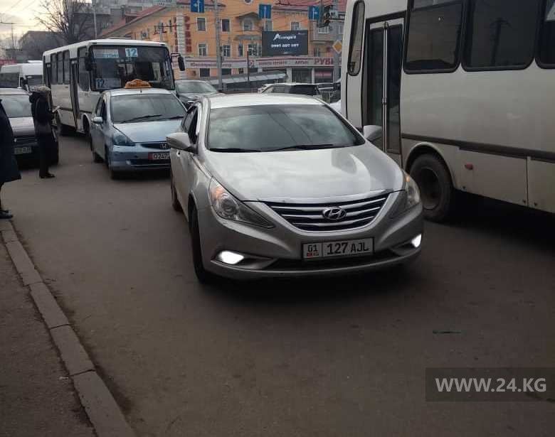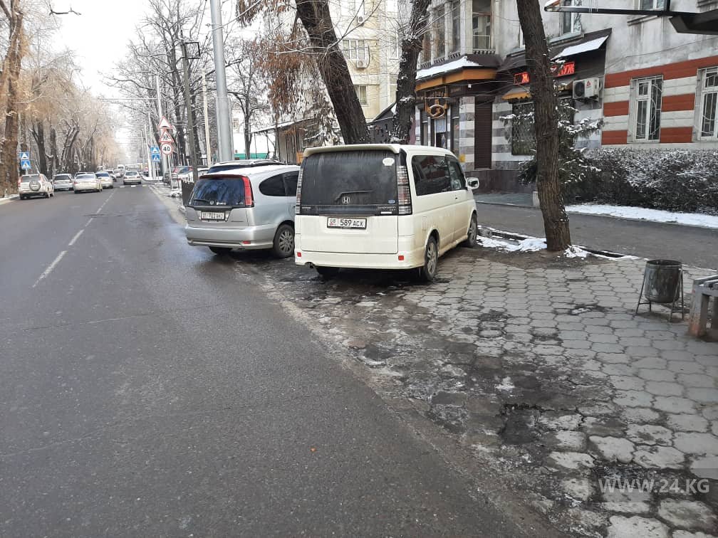 На улице Байтика Баатыра, напротив кафе Hunkar, как всегда заехали на тротуар.