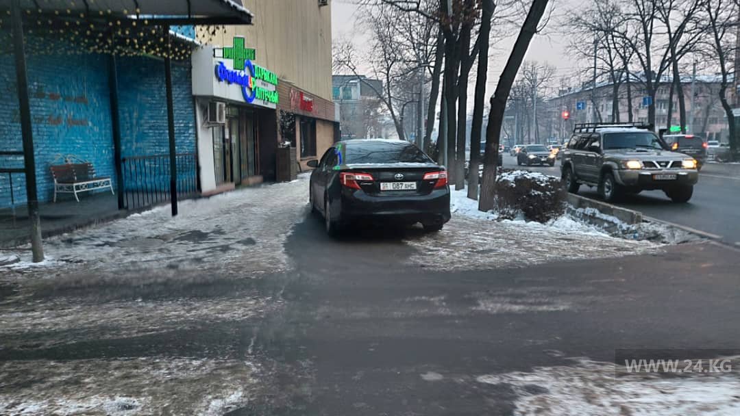 Еще один водитель оставил машину на пути горожан. Фото сделано на проспекте Манаса.