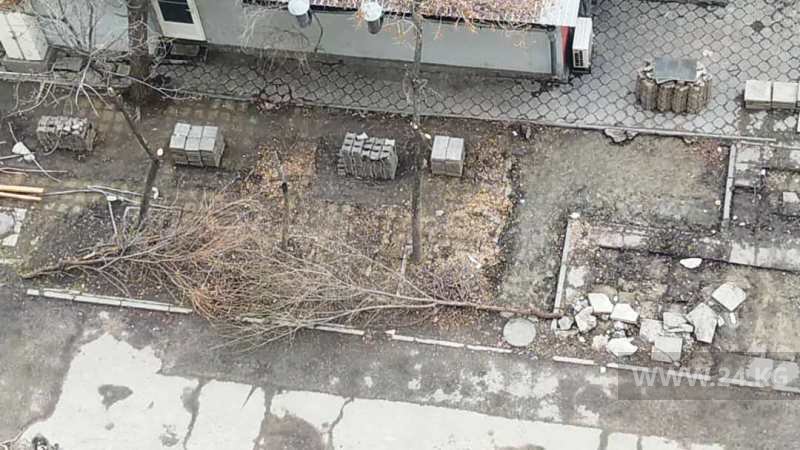 В Бишкеке на пересечении улиц Абдрахманова и Киевской продолжают вырубать деревья. Об этом 24-kg.com сообщила читательница.