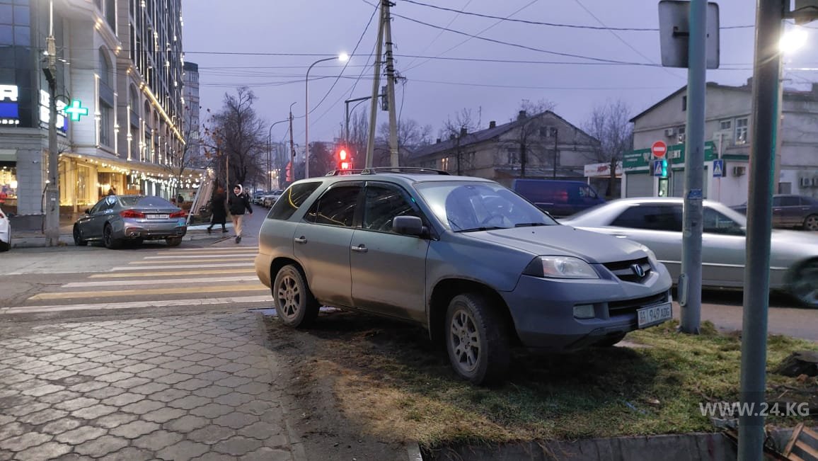 На перекрестке улиц Турусбекова и Боконбаева машину оставили на газоне.