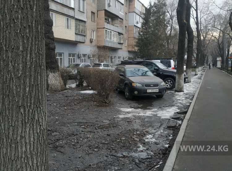 Деревья гибнут. Бишкекчане просят загородить от машин зеленые зоны города
