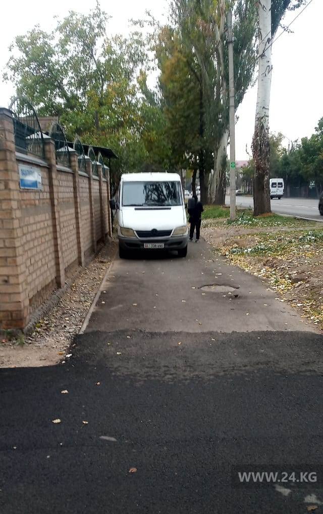 А владелец этой машины заехал на тротуар на улице Кийизбаевой рядом со школой № 53.