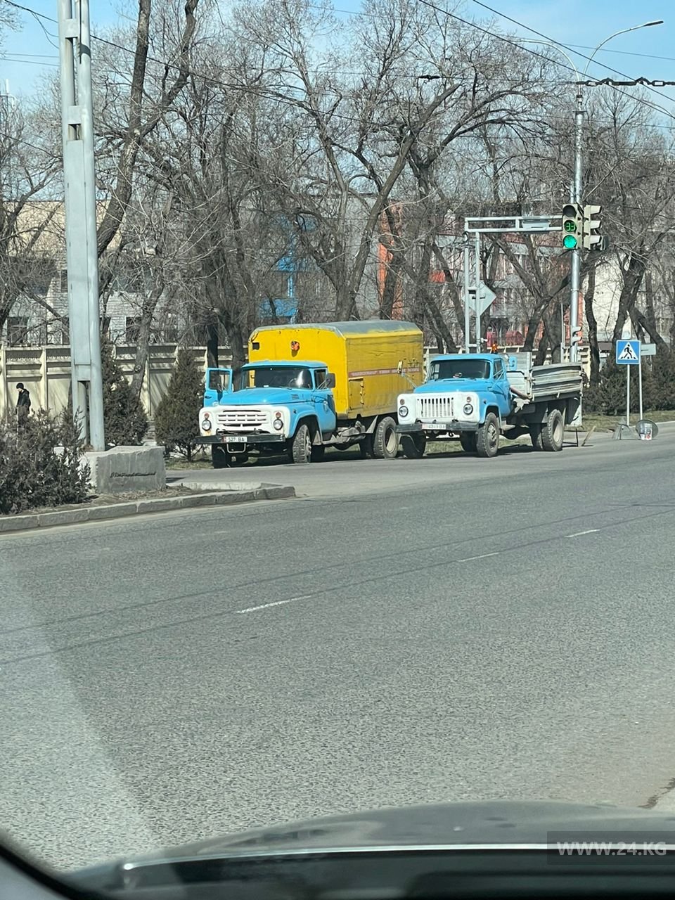 Эти машины поставили на газоне на проспекте Чингиза Айтматова.