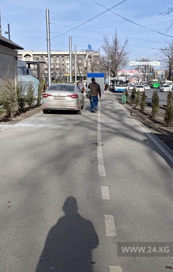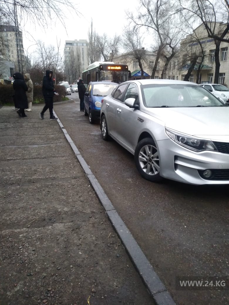 Бишкекчане жалуются и на машины на тротуаре возле цирка. Некоторые заезжают даже на газон.