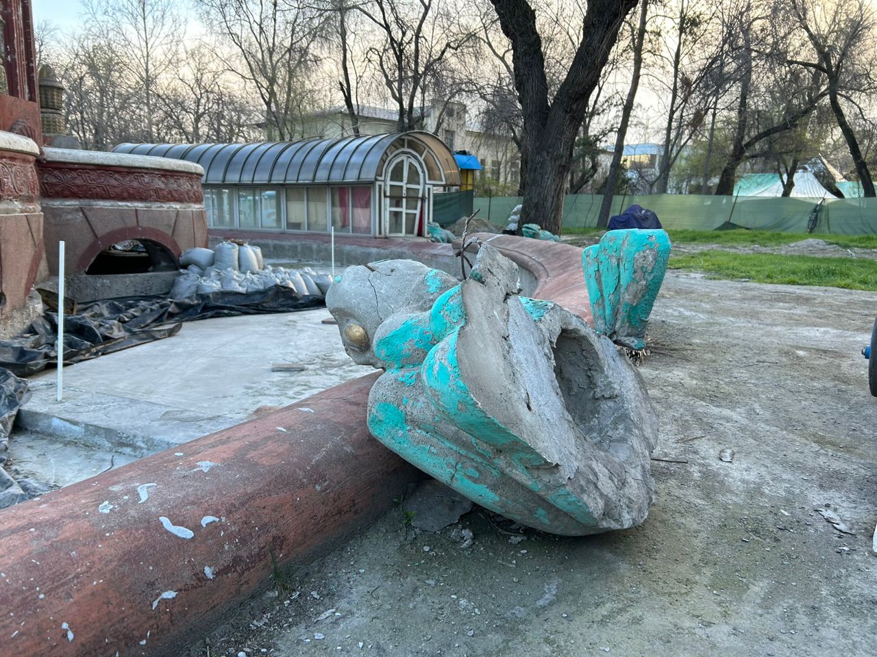 «Стоял забор год, написано было — реставрация. Забор убрали, а все как было, даже хуже стало. Статуя жабы опрокинута, вазоны расколоты, с крыши тоже исчезли скульптурные элементы», — сообщил бишкекчанин.