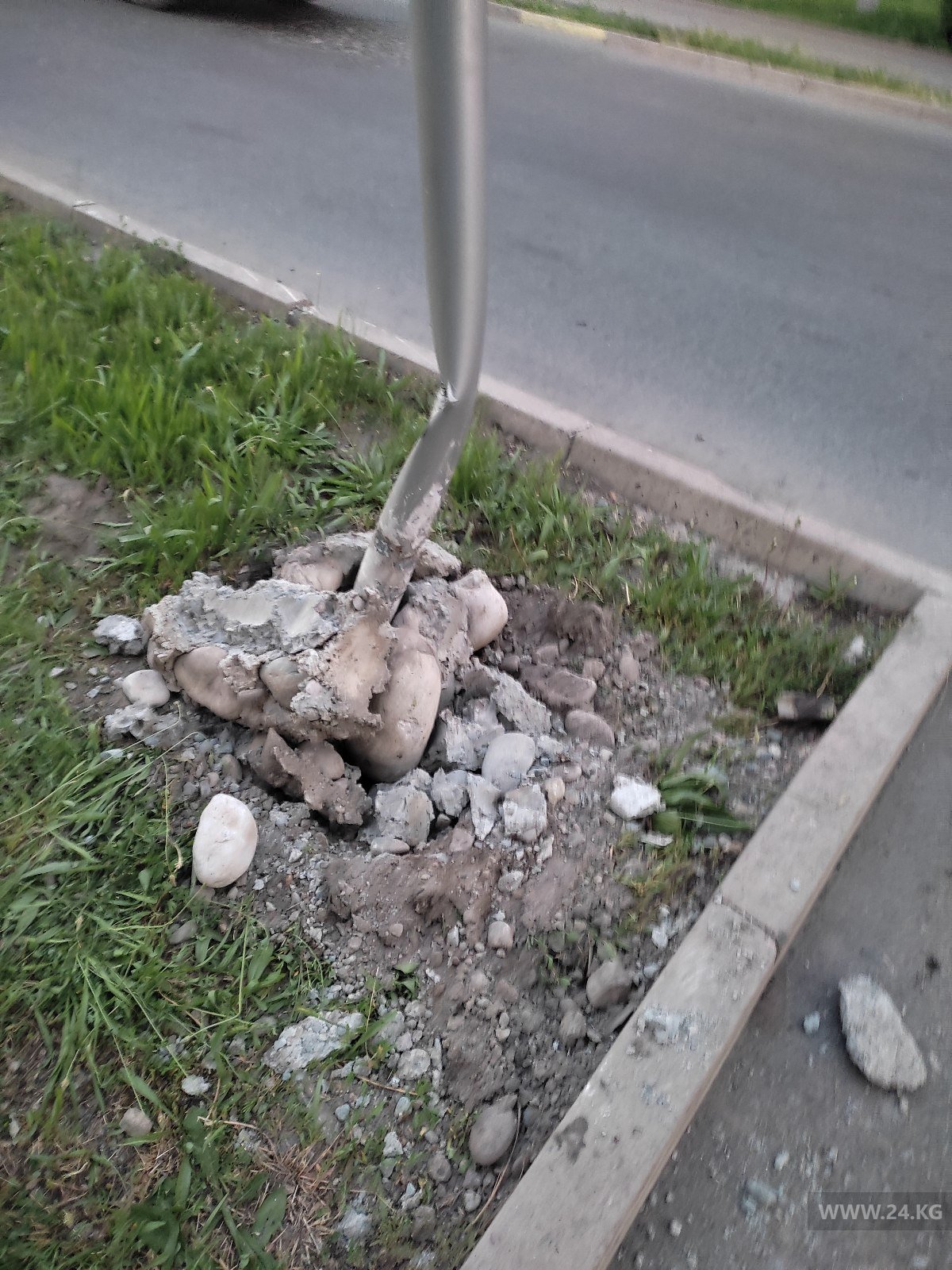 На проспекте Чингиза Айтматова, в районе парка «Адинай», сломали столб светофора. Об этом 24-kg.com сообщил читатель.