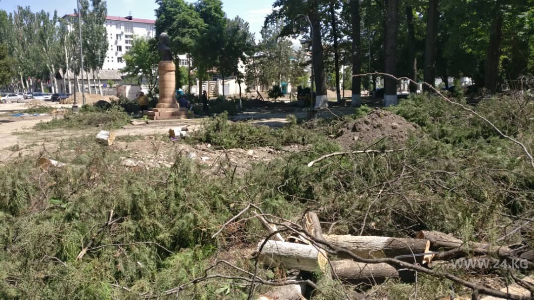 В районе пересечения улицы Жумабека и бульвара Эркиндик пилят деревья. Об этом 24-kg.com сообщил читатель.
