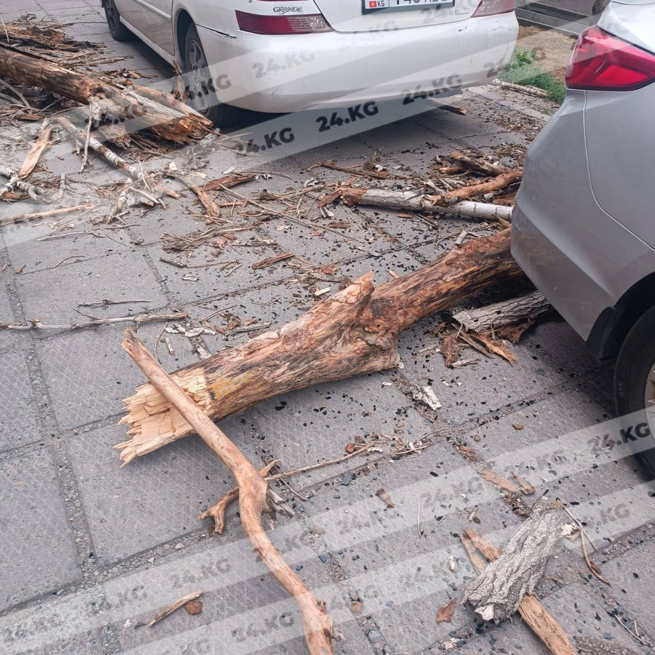 В Бишкеке во время ветра ветка упала на автомобиль. Видео 24-kg.com прислали читатели.